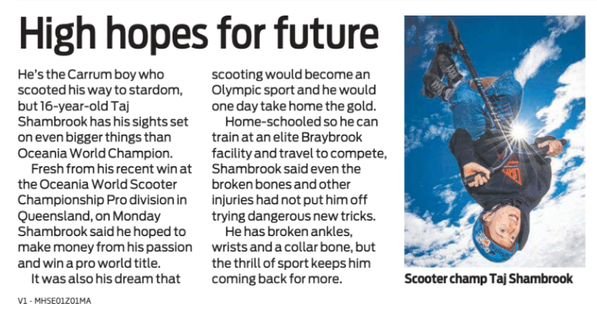 For over 16 years Handle Communications has ‘handled’ the publicity of Active Out There, an Australian company specialising in scooters and outdoor ‘wheel’ equipment. Its most known brand is Globber – a French brand that Active Out There imports to Australia. The majority of this work is influencer collaboration outreach and management. We regularly reach over 10 million Australians each year through this work. The company also has some stunt scooter brands including Grit and Crisp. We are able to generate news for these brands when sponsored riders win major competitions. Recently Taj Shambrook won best pro rider in the World Skate Oceania Championships. We were able to secure a segment on Nine News and also a piece in the Herald Sun.